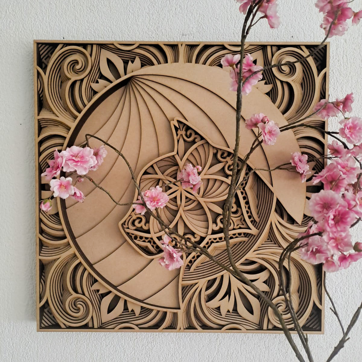 Hang de Olifant Mandala eenvoudig in uw woonkamer, slaapkamer. Geniet van de diepte, en de complexiteit van alle vormen deze zorgen voor een Ontspanning en Evenwicht. wij leveren deze gemonteerd en duurzaam verpakt. Het enige wat u hoeft te doen is het ophangen of neerzetten.